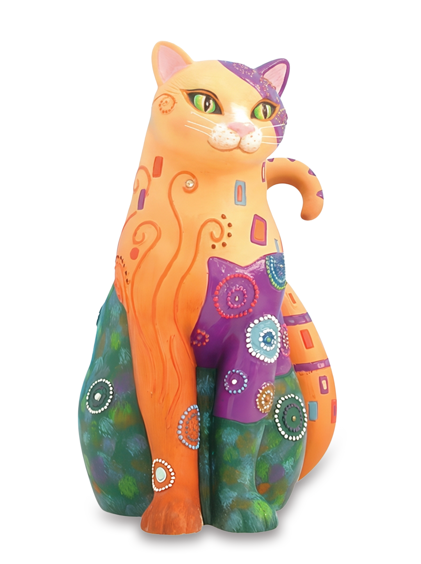 Inspired by the decorative style of artist Gustav Klimt, Kleo Kats portrays cats in a contemporary profusion of patterns, rich color, and jeweled accents.
